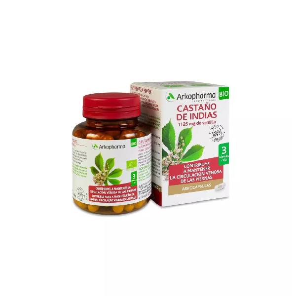 Arkopharma Arkocápsulas Castaño de Indias es un complemento alimenticio a base de castaño de indias que contribuye a mantener la circulación venosa de las piernas y la microcirculación. El Castaño de Indias es una planta que aporta innumerables beneficios para los problemas venosos. Las propiedades de estas cápsulas aportan una gran actividad vitamínica P.