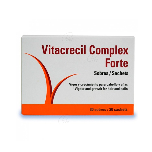 Entre los ingredientes de Vitacrecil Complex Forte se encuentra el zinc, uno de los imprescindibles para el mateimiento del cabello y las uñas en condiciones óptimas. La biotina que es una vitamina regula la salud del cabello y la cistina es uno de los elementos constitutivos de la queratina.